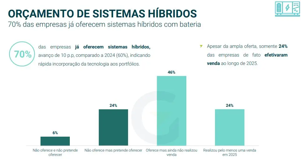 Sete em cada dez integradores brasileiros já estão oferecendo sistemas de energia solar com baterias no mercado brasileiro, mostra um estudo divulgado pela Greener com dados compilados do ano de 2025.