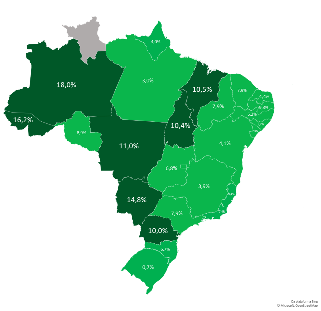O Rio Grande do Sul foi o estado com o menor avanço, de 0,7%, impactado pela tragédia climática que atingiu o estado em maio e junho e derrubou a demanda por eletricidade no mercado regulado, com boa parte da população fora de casa e parte da indústria e dos estabelecimentos comerciais paralisados.