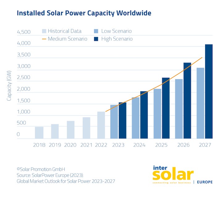Na conferência “Perspectivas Globais do Mercado de Energia Solar 2023-2027”, apresentada pela Solar Power Europe, a associação europeia de empresas do setor, foi comprovado que o mercado fotovoltaico atingiu números recordes, com um crescimento de 239 GW.
