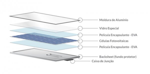 Um módulo fotovoltaico é composto de várias camadas de materiais que são compactadas em um processo de laminação por aquecimento e vácuo durante a fabricação. Deve-se eliminar totalmente o ar e a umidade nesse processo, para evitar sua permanência entre os componentes do módulo acabado.