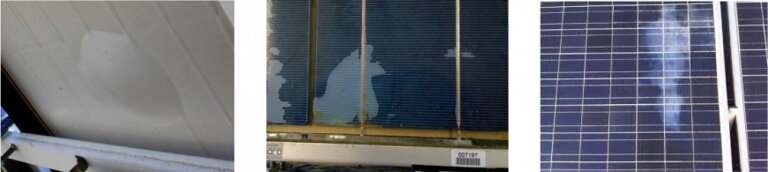 Outra causa é o uso de materiais de baixa qualidade. Especialmente o EVA e a folha traseira (backsheet) estão propensos a perder sua capacidade de adesão. Se levarmos também em consideração a exposição permanente a fatores climáticos como temperatura, umidade e irradiação UVA, módulos de baixa qualidade podem começar a delaminar logo após a instalação.