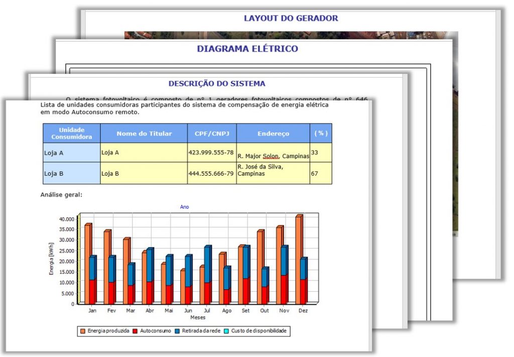 Ter um relatório automatizado com figuras, textos e informações personalizadas conforme o padrão da sua empresa integrado ao software de simulação traz ganhos de tempo e profissionalismo aos documentos enviados aos clientes, sejam eles propostas comerciais, descrições detalhadas ou simulações financeiras.