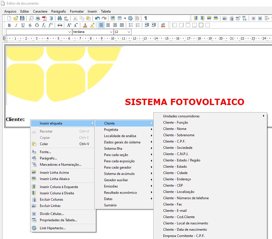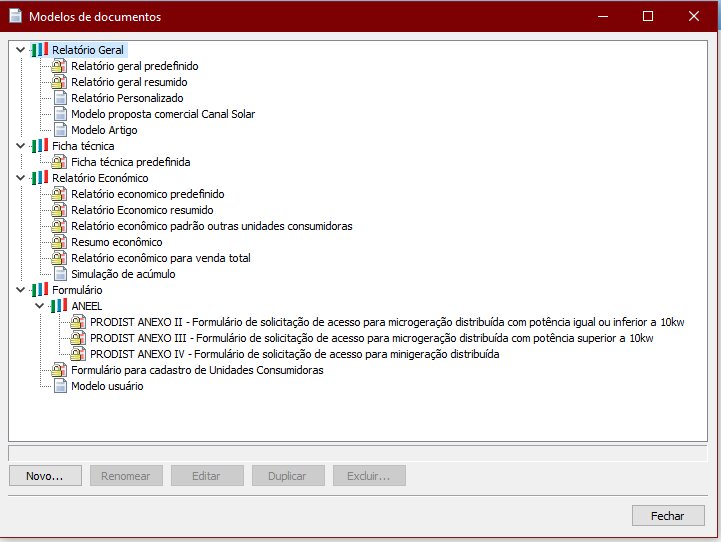 É possível, por exemplo, montar um modelo de relatório para ser usado no envio de propostas comerciais, agilizando bastante a confecção do mesmo, já que o software preencherá os dados na proposta comercial com o resultado da simulação do sistema. A seguir vamos mostrar a criação de um modelo de proposta comercial no SOLergo.