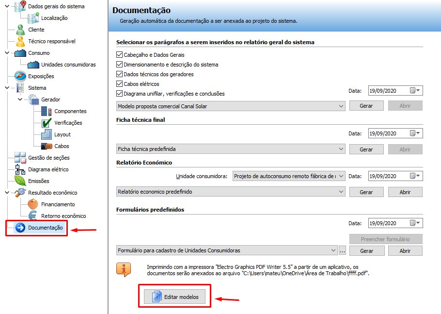 Os modelos de relatórios do SOLergo podem ser acessados na seção “Documentação”, clicando em “Editar modelos”.