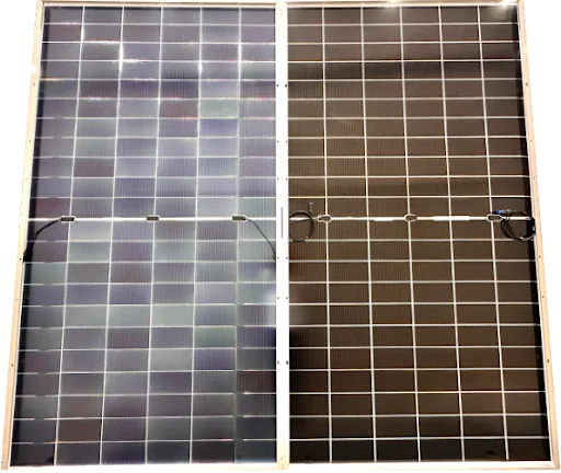 Portanto, a diferença na coloração das faces traseira e frontal, bem como a falta de uniformidade de cor entre as células, é uma característica marcante dos módulos TOPCon.