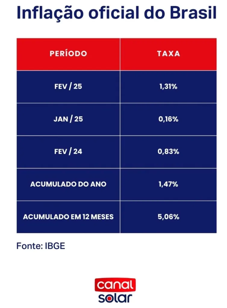 A inflação oficial do Brasil avançou 1,31% em fevereiro, após uma alta de 0,16% em janeiro, mostram dados publicados pelo IBGE (Instituto Brasileiro de Geografia e Estatística) nesta quarta-feira (12).