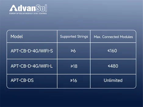 A AdvanSol integra o controle de desligamento, a aquisição de dados e a transmissão de sinais em um único Data Control Box. Com armazenamento local de dados, o equipamento suporta até 7 dias de memória flash local, preservando informações operacionais mesmo em caso de falhas de comunicação, evitando impactos na análise de O&M e na avaliação de receita.