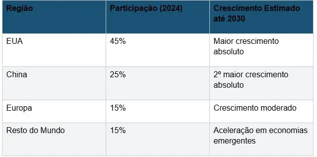 Geograficamente, a concentração é marcante: quase metade da capacidade de data centers dos EUA está em apenas cinco clusters regionais. Na Irlanda, os data centers respondem por 20% do fornecimento medido de eletricidade. No estado americano da Virgínia, esse índice chega a 25%.