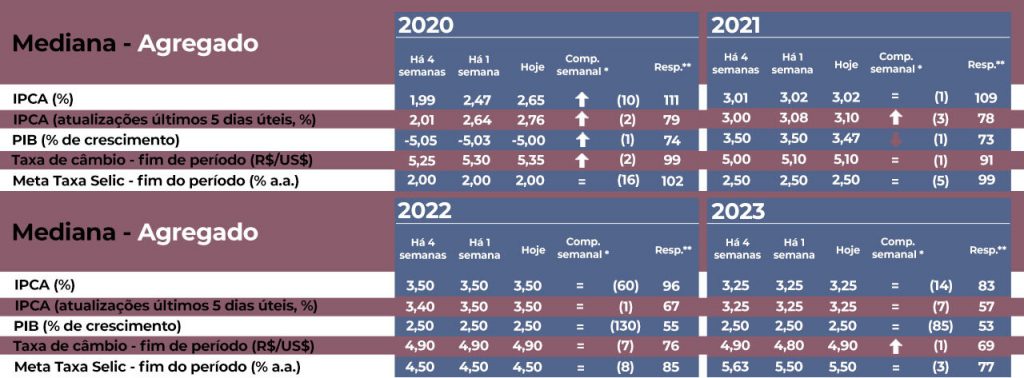 Finalmente, será considerada uma taxa de desconto (ou seja, uma taxa de referência de retorno de investimentos financeiros) conforme o histórico da SELIC para o momento e conforme a previsão da SELIC segundo o boletim Focus do Banco Central.