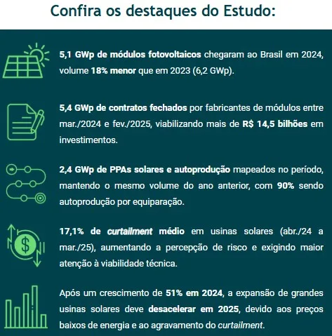 Mesmo com a retração nas importações, os contratos firmados entre fabricantes e compradores no período de março de 2024 a fevereiro de 2025 somam 5,4 GWp, sinalizando investimentos superiores a R$ 14,5 bilhões ao longo dos próximos meses.