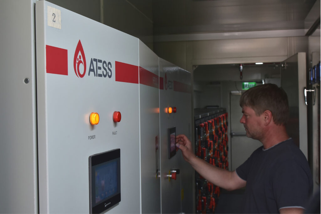 No local, foi instalada uma solução híbrida, que integra solar e armazenamento de energia em contêiner de 450 kW, equipado com três inversores híbridos all-in-one ATESS 150kW HPS paralelos e ATS (chave de transferência automática).
