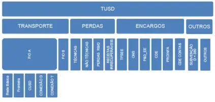 Para entender o que pode ter ocorrido é preciso compreender o propósito dessa modalidade tarifária. A Tarifa Branca foi concebida para sinalizar aos consumidores os custos horários associados à prestação do serviço de transporte da energia na rede de distribuição – a TUSD Transporte, uma das quatro partes da TUSD, como mostrado na figura a seguir.