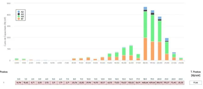 - Posto 2: 23,73 R$/kW;