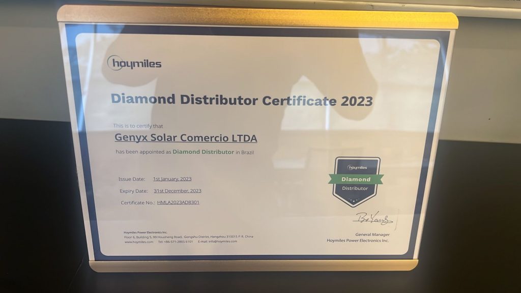 A distribuidora de equipamentos fotovoltaicos Genyx recebeu a certificação de distribuidor diamond da Hoymiles. O certificado foi concedido aos 12 maiores distribuidores do mundo, sendo que apenas três deles estão nas Américas.