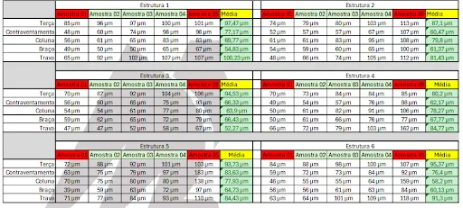 Em uma usina equipada com equipamentos do Grupo Metal Light instalada há 2 anos, localizada em uma cidade no Rio Grande do Norte, encontramos uma média de 75,7 µm de proteção após 2 anos de exposição ao ambiente, o que nos indica que o tempo de vida útil desta usina será acima dos 38 anos com segurança.