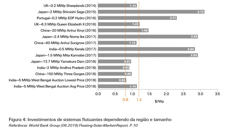 O que é muito interessante de analisar é que enquanto o investimento inicial para o sistema flutuante de larga escala é maior do que o do seu homólogo em terra, o LCOE final (custo nivelado de eletricidade) seria comparável, considerado o maior rendimento dos sistemas flutuantes.