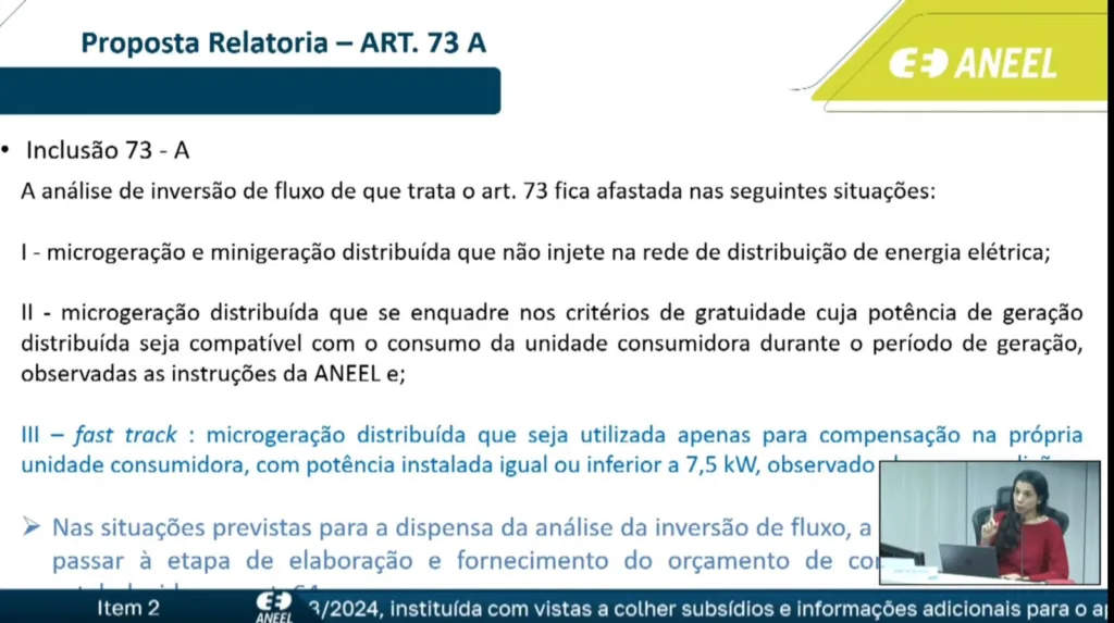 Em sua deliberação, a ANEEL definiu a dispensa da análise de inversão de fluxo para sistemas de GD (geração distribuída) em três cenários: