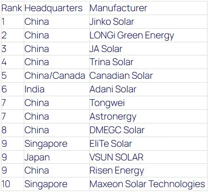 A metodologia de pontuação da Wood Mackenzie avaliou mais de 38 fabricantes de painéis de 11 países, com capacidade total de produção e remessa respondendo por 68% e 84% do mundo, respectivamente. A classificação examina nove critérios diferentes, incluindo experiência em fabricação de módulos, integração vertical, desempenho financeiro e utilização de capacidade.