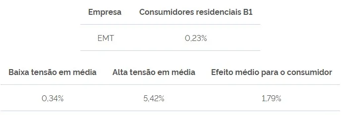 A ANEEL (Agência Nacional de Energia Elétrica) autorizou o reajuste tarifário da Energisa Mato Grosso (EMT) na última terça-feira (01/04). Os novos valores da distribuidora, que atende cerca de 1,69 milhão de unidades consumidoras, entrarão em vigor no dia 08/04.