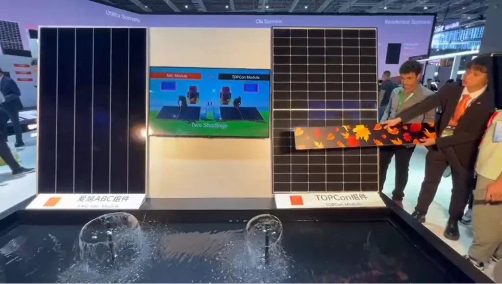 Além da tecnologia HJT, foi possível encontrar na SNEC o módulo Neostar 1U + da AIKO Solar, que possui células ABC (All Back Contact), com potência de 655-680 W, eficiência de 24.3% e 2465*1134*30 mm.