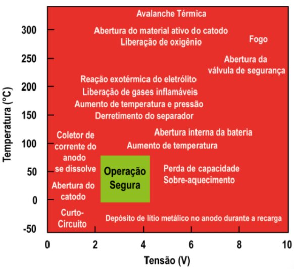 Baterias de lítio possuem uma SOA (safety operation área) que impõe algumas restrições como: