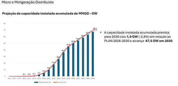 Entre os fatores que explicam a revisão para baixo estão os cortes no imposto de importação na China, a manutenção de taxas de juros elevadas no Brasil, considerando que cerca de 50% dos sistemas são financiados, e o aumento da cobrança escalonada do Fio B.