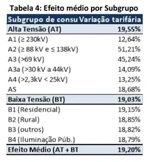 No entanto, a análise detalhada da nota técnica mostra que os impactos variam de acordo com a classe de consumo e o nível de tensão, podendo ser significativamente maiores para alguns grupos.