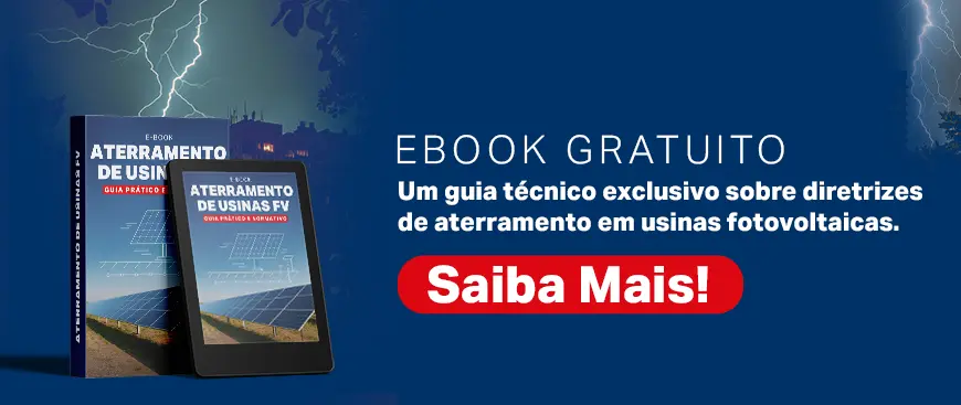 A norma reconhece que o sistema de aterramento de uma usina fotovoltaica é formado pelas estruturas metálicas acima do solo interligadas por cabos de cobre nu ou de aço-cobreado enterrados.
