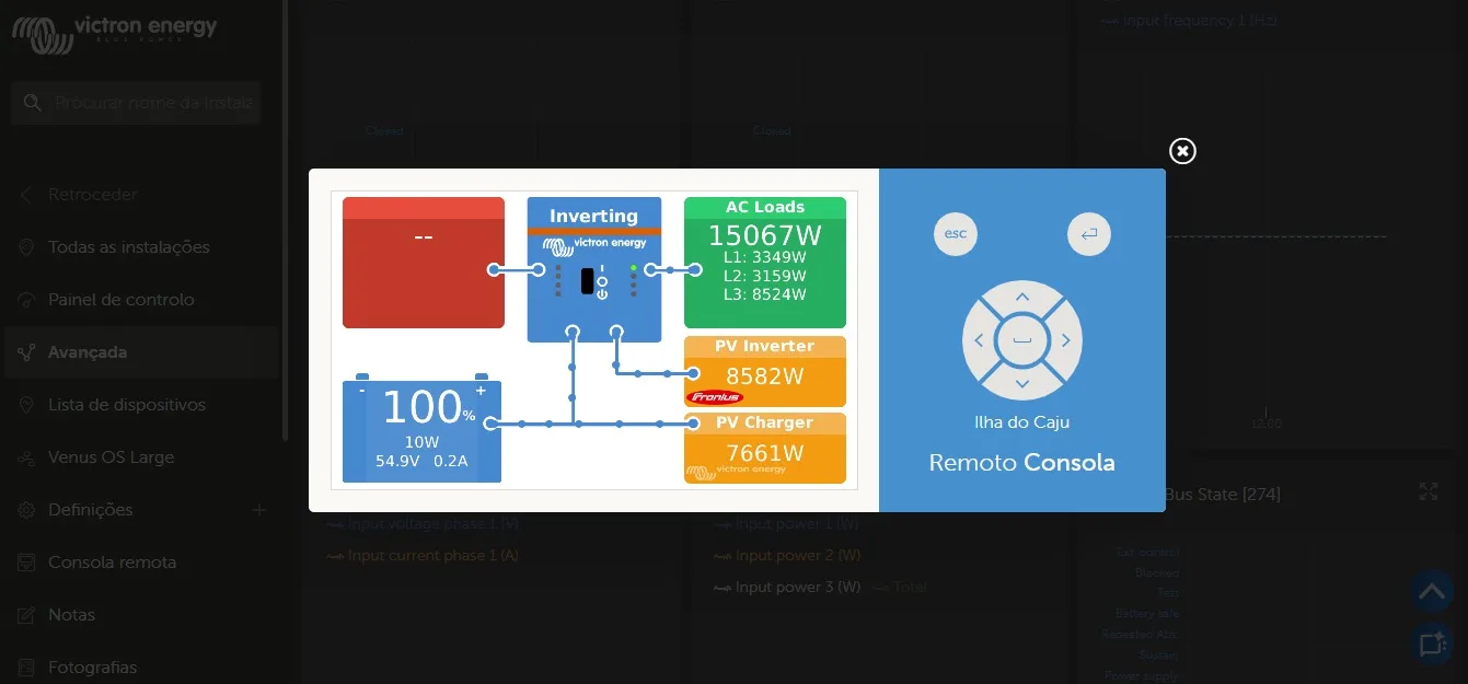 Todo o sistema é monitorado em tempo real pela plataforma Victron Remote Management (VRM), que visa garantir visibilidade, controle e eficiência operacional mesmo à distância.