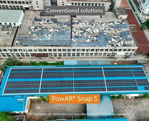 Após a passagem dos tufões, verificou-se que os sistemas fixados com os clipes ARaymond não apresentaram qualquer tipo de soltura, deslocamento ou deformação estrutural nos módulos. Os pontos de fixação permaneceram íntegros, mesmo em áreas que sofreram ventos com velocidade superior a 150 km/h.