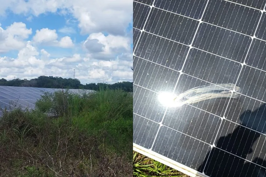 A empresa também encaminhou imagens à reportagem que, segundo a própria Nexsolar, demonstrariam as condições em 2025, incluindo acúmulo de sujeira e vegetação, fatores que, de acordo com a companhia, podem comprometer a eficiência e o desempenho de geração de energia do sistema.
